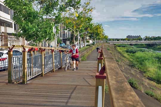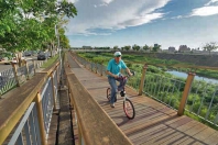 自行車道雖然越來越普及,但是能規劃這麼美的卻沒有幾個!!沿著河堤慢跑、騎自行車的感覺真的很棒~清晨有日出迎接,傍晚有夕陽伴隨,小編覺得超有拍偶像劇的fu~