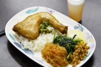 一個主菜搭配三樣配菜,大概是港式燒臘店的基本,店的感覺整體還不錯,燒鴨的皮處理算酥脆,吃起來還挺有嚼嚼勁,推薦給偶爾想要換換口味的人。
