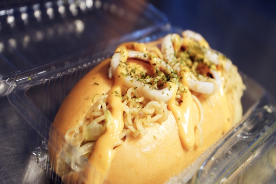 來自日本的永勝炒麵麵包,每到假日總是大排長龍。炒麵麵包主要分為兩種口味,日式和風和義大利白醬,日式和風醬吃起來較為清爽,而一般人對義大利白醬的印象為吃起來較膩,但是永盛炒麵麵包的義大利白醬卻不同,搭配麵包和炒麵一起品嘗,意外的讓人想一口接著一口。
