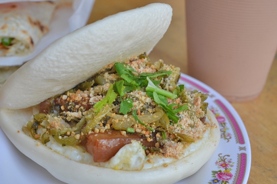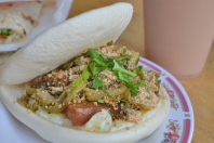 這家在彩卷行前的早餐店很特別,上面寫著浙江口味!!小編還真沒見過類似的早餐店,菜單上的品項看不出跟台灣早餐哪裡不同,點個刈包來吃看看!!肥滋滋的五花肉加上提味的花生再疊上荷包蛋與酸菜,小編覺得挺不錯der~但還是感覺不出跟台灣口味哪裡不同,如果你發現了,記得跟小編說喔~