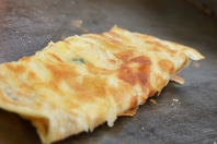 今年新開幕的脆皮蛋餅,堅持手工現做,看著從麵團變成香噴噴的蛋餅過程,激發味蕾讓人口水直流,拿到熱騰騰蛋餅的瞬間大口咬下,酥脆的外皮讓人想大聲說:讚啦!