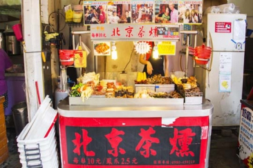 北京茶燻可不像一般的滷味,熱滷中所帶的蒜末與酸菜是北京茶燻的招牌味道。選幾樣自己喜歡的小菜,米血、黑輪、豬耳朵、百頁豆腐、青椒、高麗菜、鳥蛋……等等,應有盡有!當獨特滷汁的鹹味消散後,會有回甘的口感,用來搭配其他小菜更是意外的入味,可謂是開胃首選!