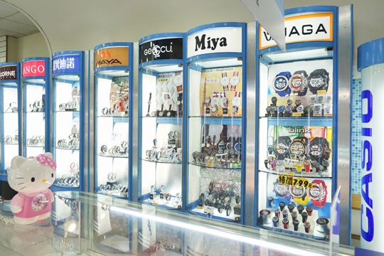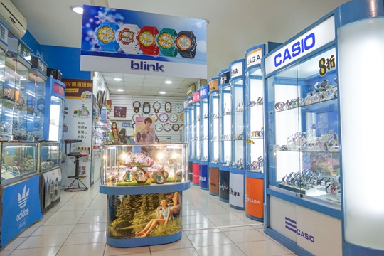 強烈的藍黃對比讓招牌更加顯眼,順著小階梯走進店裡,藍框玻璃櫃在兩側排成整齊隊伍迎接小編的到來,牆面懸掛的時鐘不停響起滴答的掌聲。小編覺得店內滿滿的分區品牌手錶,讓現場感覺非常豐富!!若是鐘錶生病了,也可以來這裡請闆闆幫忙醫治喔~